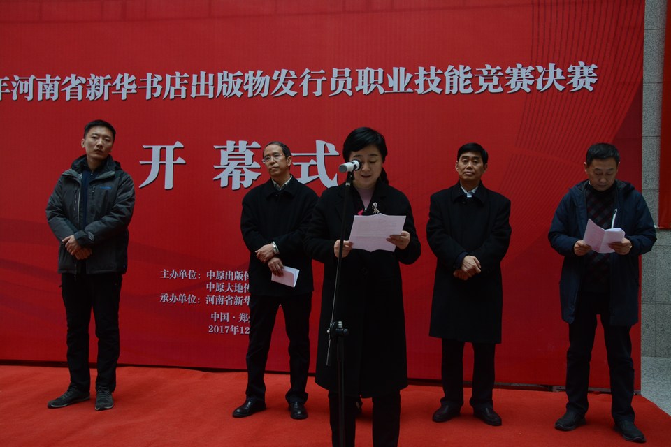 根据《关于印发2017年全省产业(系统)职工技能竞赛工种(项目)的通知》(豫劳竞办〔2017〕1号),为加强全省出版物发行行业人才队伍建设,着力培养和造就一批既有丰富理论知识又有熟练业务技能的高素质人才,有力支持、加快助推全省书店转型升级和创新发展,2017年全省新华书店出版物发行员职业技能竞赛决赛于12月12日-14日在郑州成功举办。河南省总工会副主席杨会卿,中原出版传媒集团副总裁马雪、省人社厅职业能力建设处王远副处长等领导莅临开幕式指导。