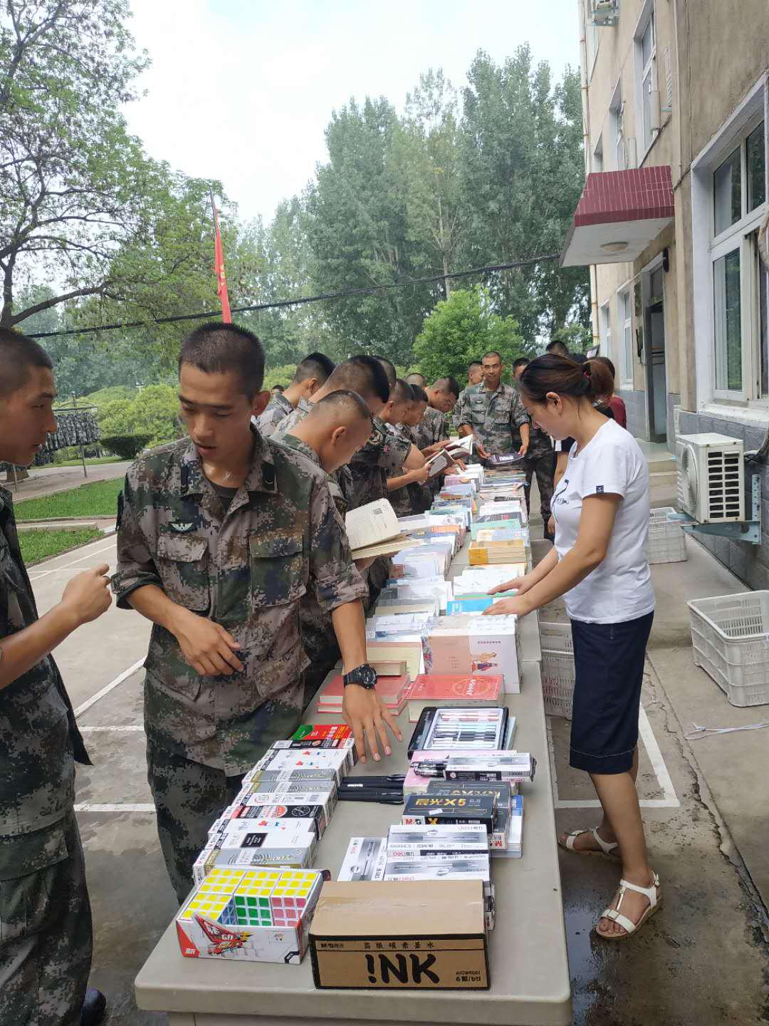 “八一”前夕,襄城县店积极组织员工冒着高温到驻军部队,开展主题流动售书活动,为战士们送去丰富的精神食粮,受到热烈欢迎。