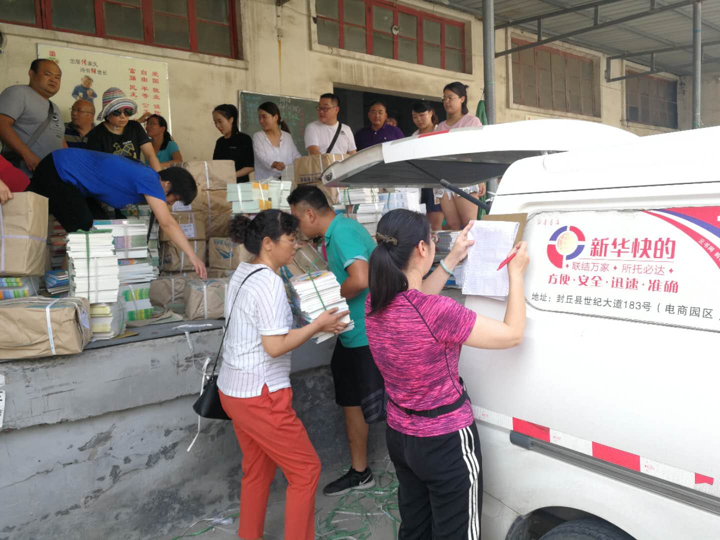 8月27日,新乡市店集中抽调了所有车辆和部分行管人员,来到教材发行一线,投入到紧张的教材、教辅分发工作当中,服务好前来取书的每一所学校。在此之前,为了保障每一册课本在开学前及时送到学生手中,针对时间紧、任务重这一情况,新乡市店研究制定了切实可行的教材、教辅发行工作方案,保障教材教辅收发工作顺利开展,确保“课前到书 人手一册”政治任务圆满完成。