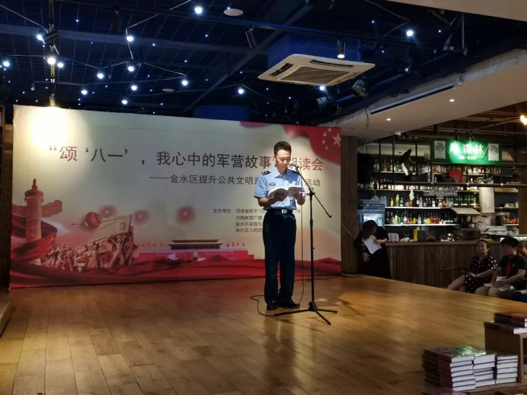 8月1日上午,为庆祝中国人民解放军成立92周年,更好展现当代人民子弟兵卓越风采,讲述军民相拥的动人故事,推进提升公共文明素养“七进”工作,中国·金沙贵宾3777线路检测中心、河南教育广播、金水区委宣传部(文明办)、金水区人民武装部共同举办“颂‘八一’,我心中的军营故事”朗读会,暨金水区提升公共文明素养“七进”系列活动在中原图书大厦回声馆舞台举行。