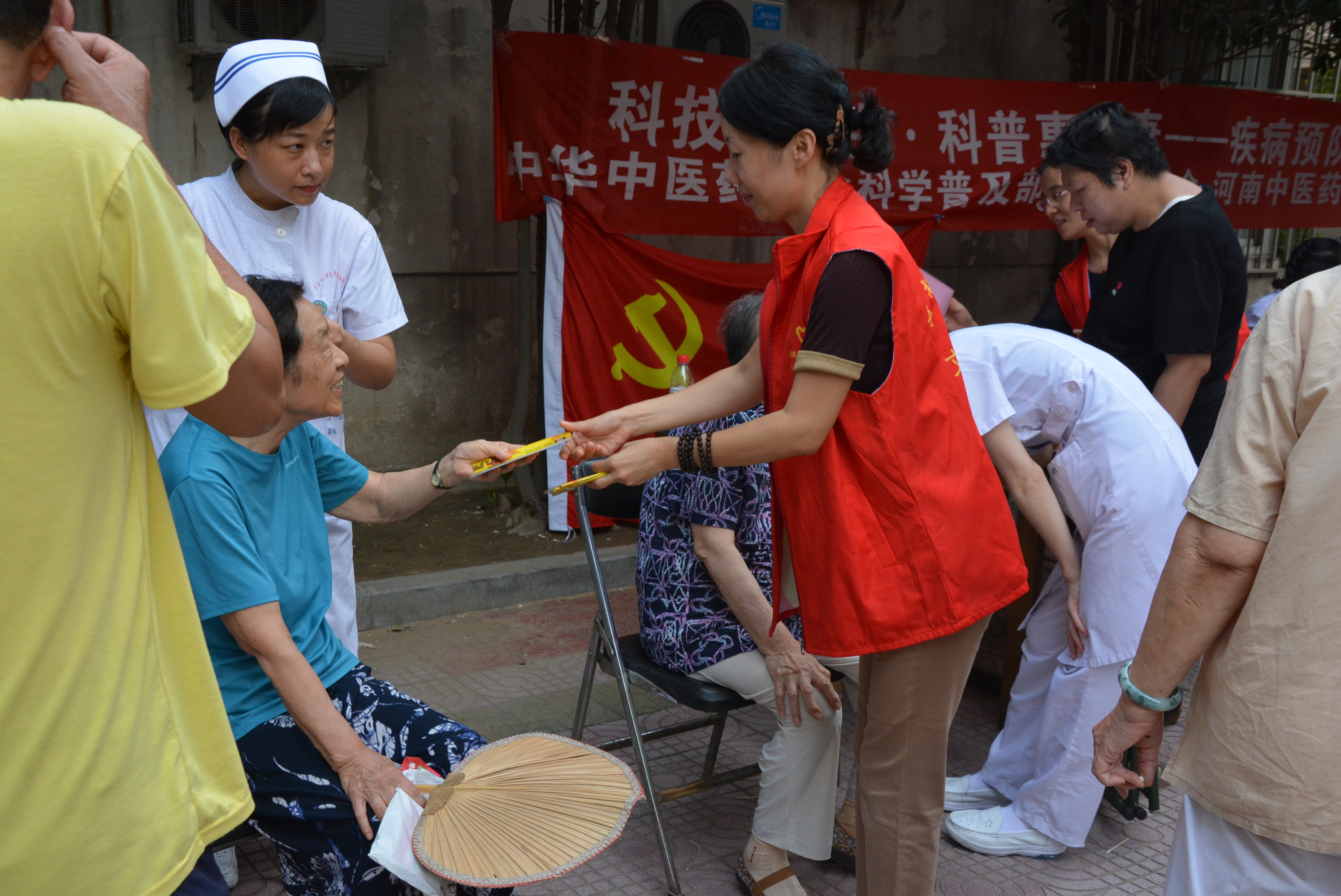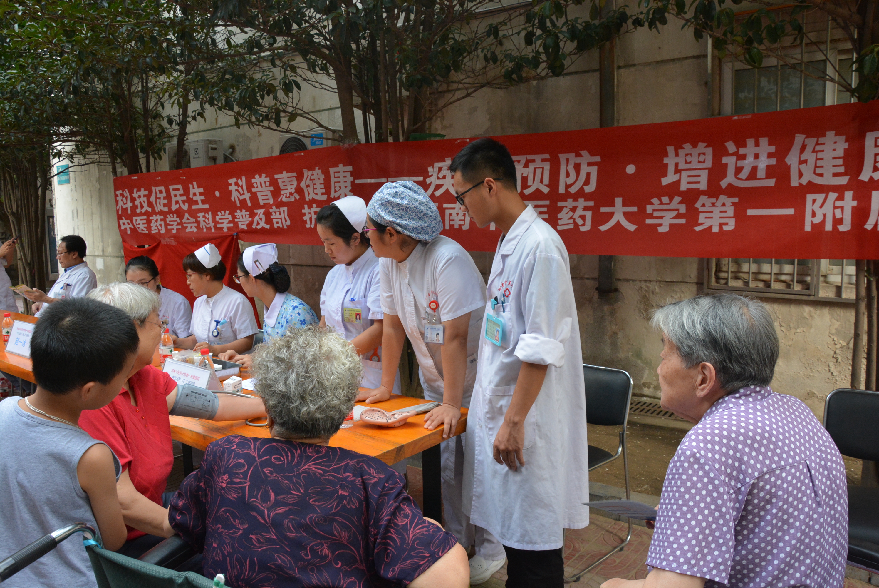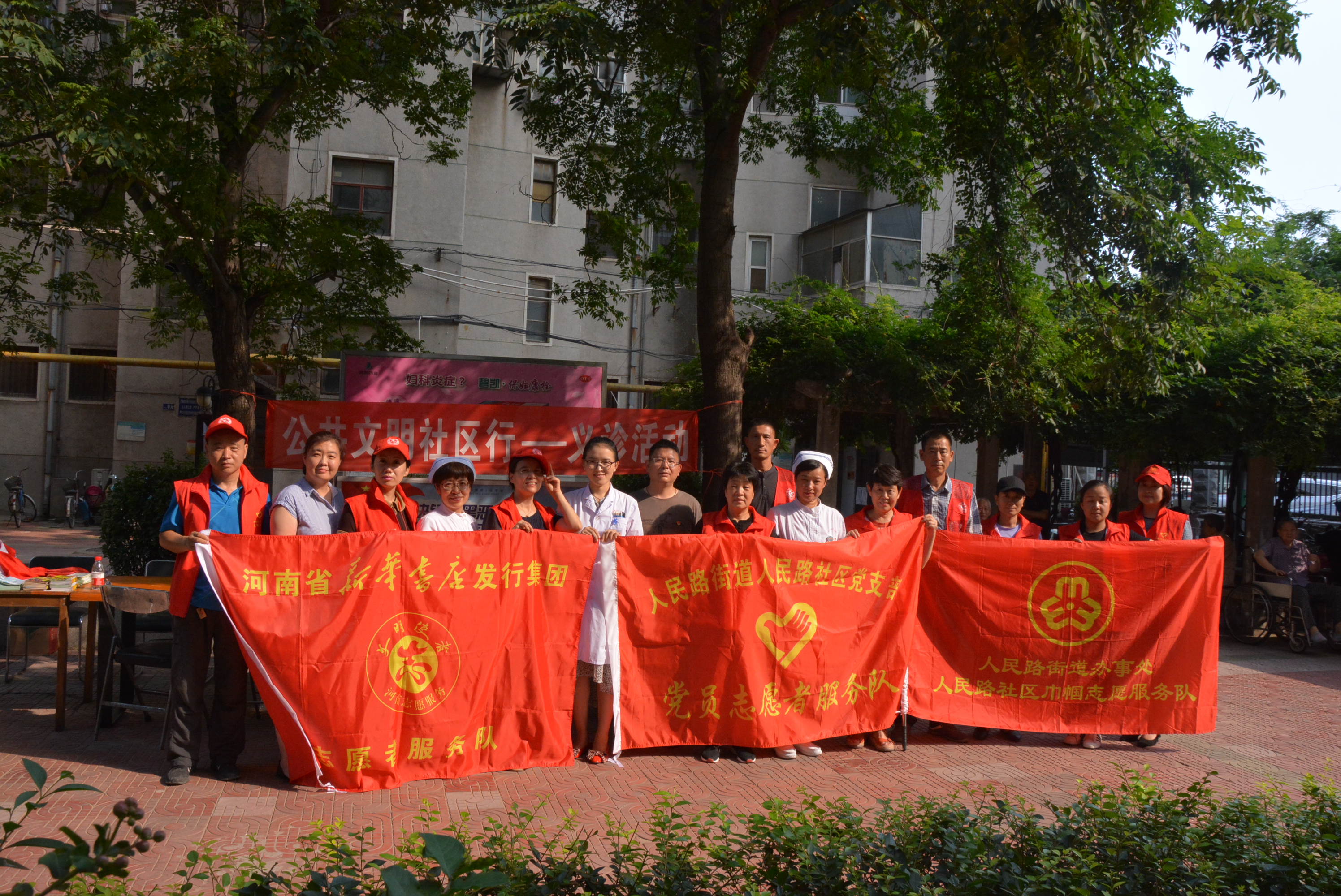 为加大文明单位创建力度,2019年8月13日下午,发行集团联合金水区人民路社区、河南中医药大学第一附属医院,到省新华书店人民路家属院,现场组织开展“公共文明社区行”义诊活动,为居民办好事、做实事,把好事办好,更好地为社区居民和周边群众提供就近、便捷、贴心的医疗服务,以实际行动贯彻落实好上级文明办倡导的“迎民族盛会 庆七十华诞 公共文明社区行”系列文明创建工作。此次义诊活动的项目主要有常见病问诊,耳穴贴压,测量血糖、血压等。
