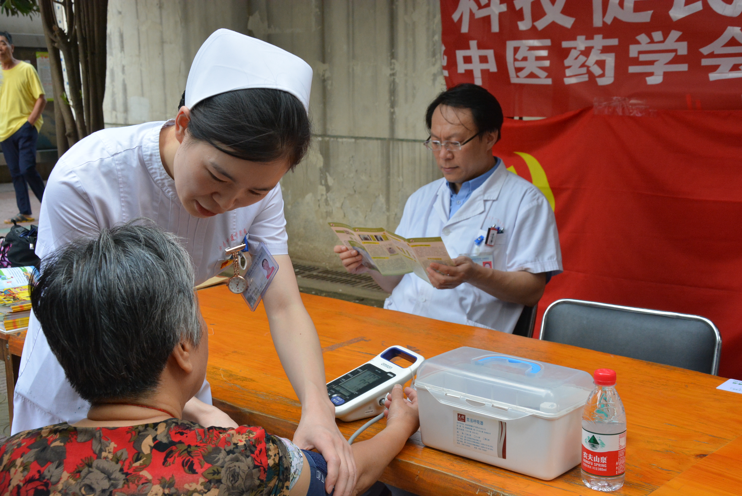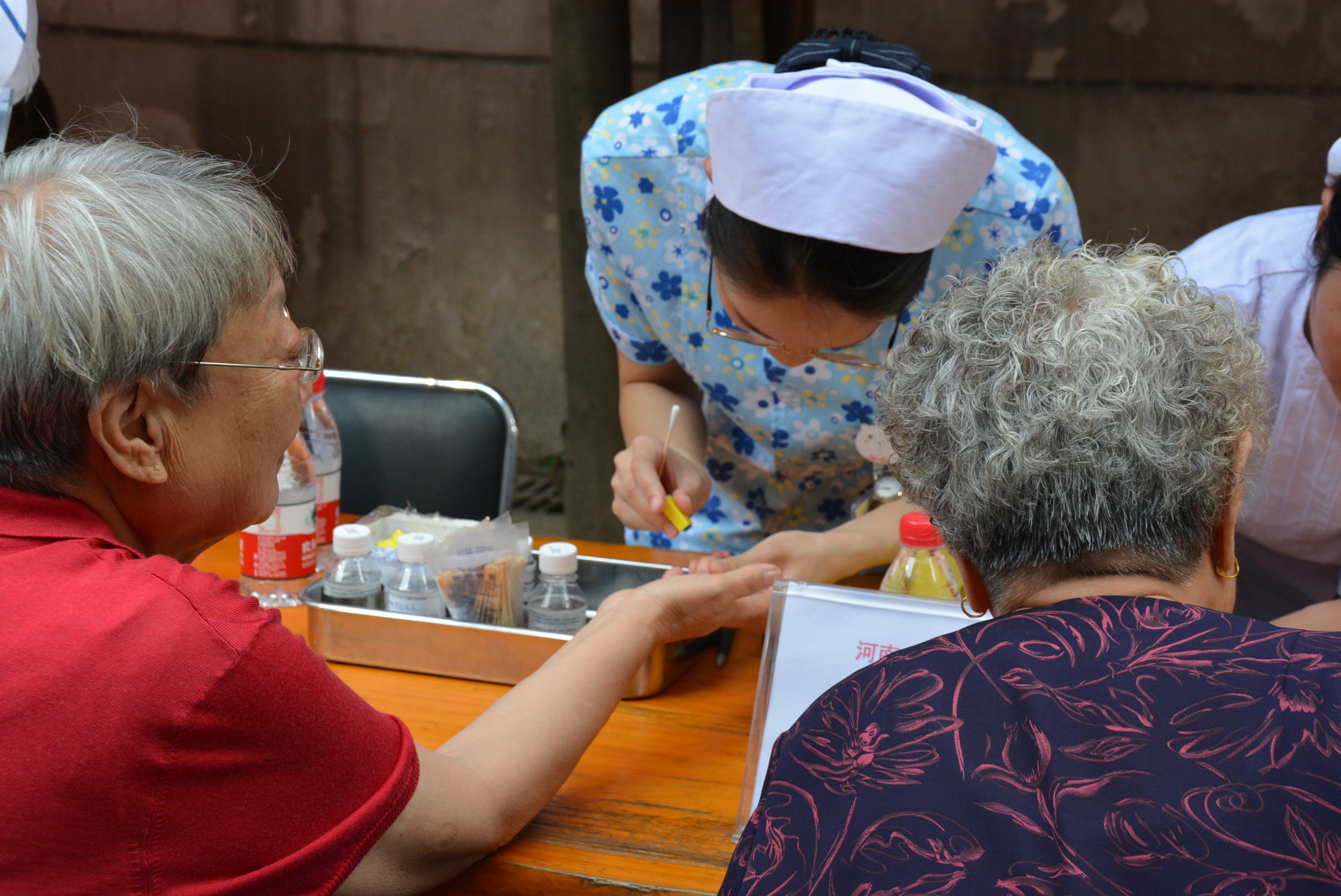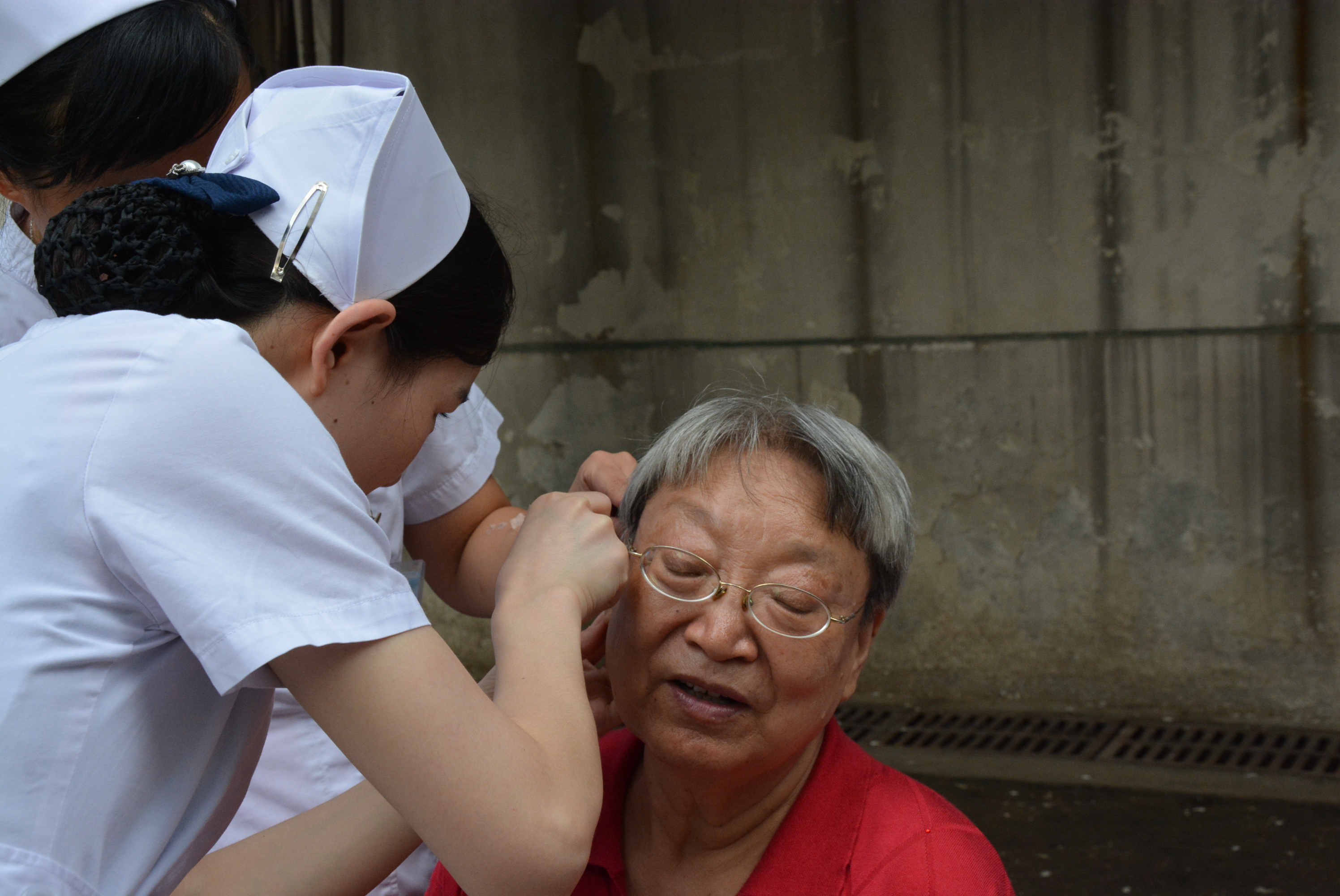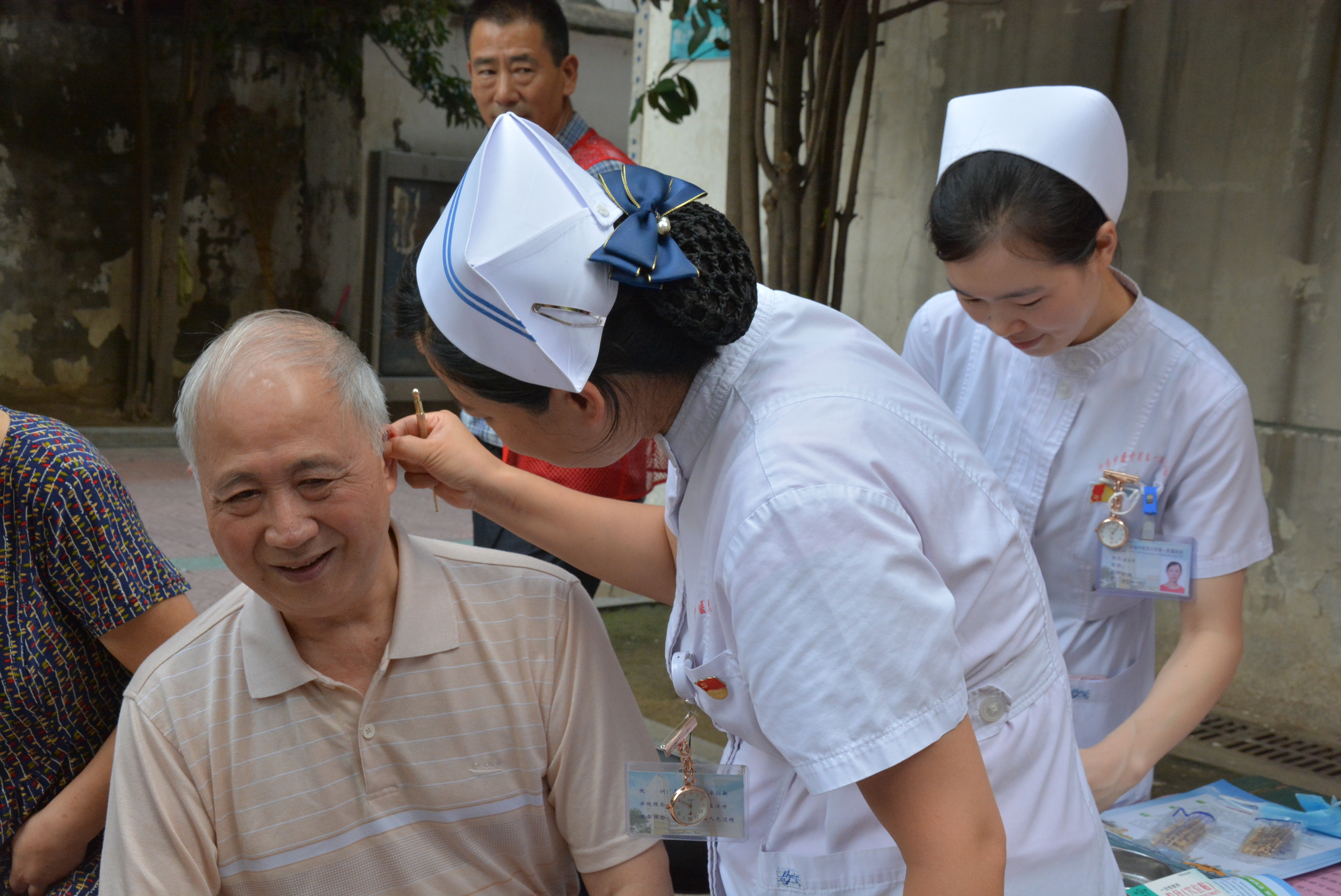 在诊疗检测过程中,检测结果基本正常的大爷大妈,脸上都露出了舒心轻松的笑容;也有个别做耳穴贴压者,因有些疼痛而呲牙咧嘴憨笑的。整个活动现场,医务人员既忙碌,又有条不紊;候诊的社区居民,在现场工作人员的指引下,秩序井然,有序等候。