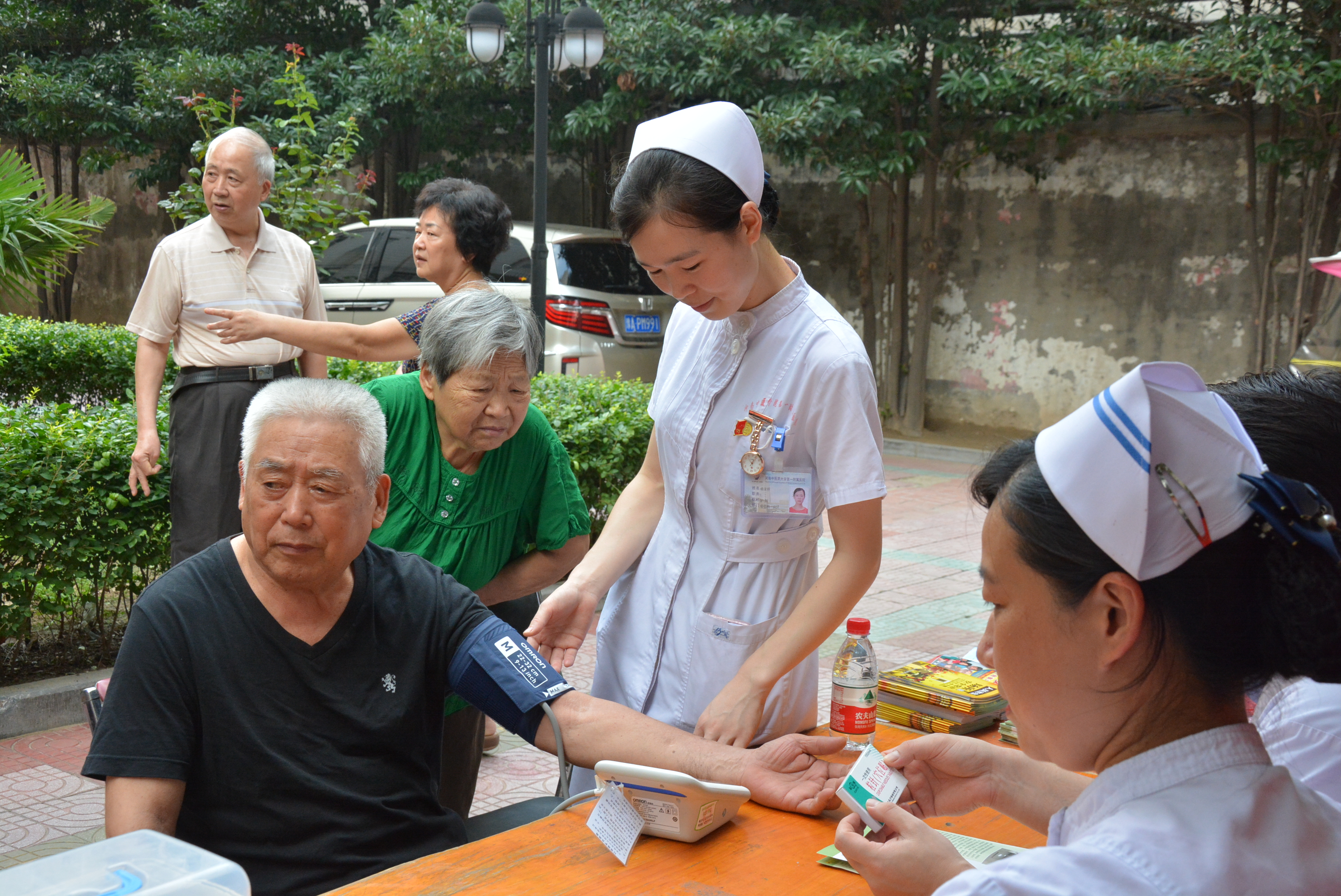 义诊活动现场,在医务人员准备工作就绪之前,已经有不少提前得知消息的大爷大妈在家属院楼下排队候诊,有几位老人还是坐着轮椅过来的。对这样送上门的免费诊疗服务,大爷大妈们内心充满了期待。