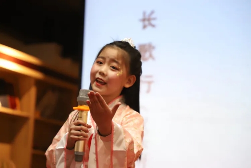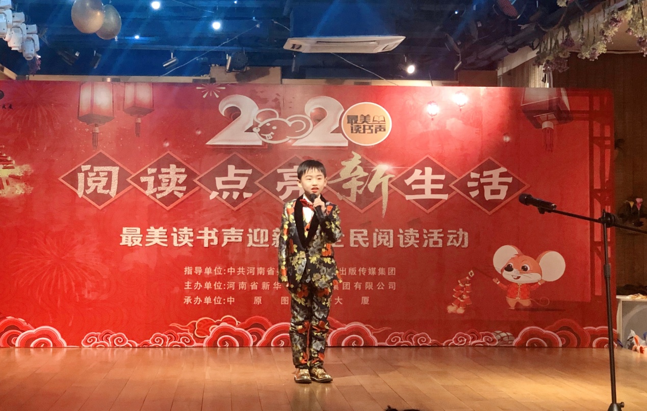 “七十年春华秋实,七十年日升月落。这里,有我们热血澎湃的青春年华…”,2019年12月29日晚,在中原图书大厦组织开展的“最美读书声”庆元旦阅读活动上,8岁的曹子睿小朋友正在用铿锵有力的声音深情朗诵《70年赞歌》。