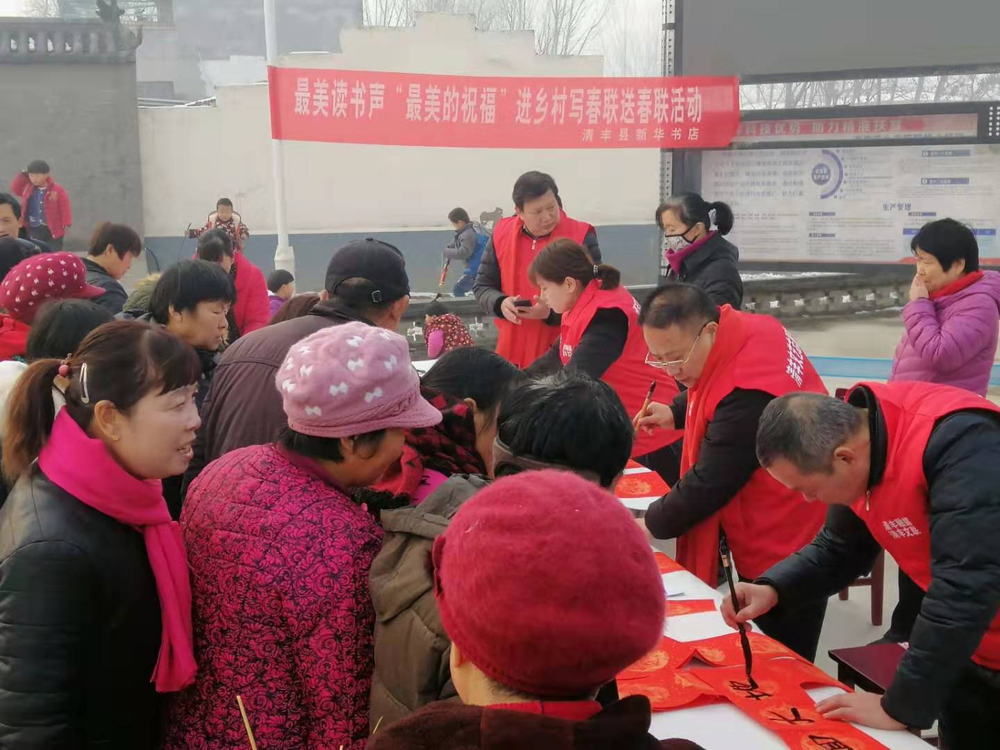 1月17日下午,清丰县新华书店邀请清丰县文联书画名家到大流乡刘圈村开展“最美的祝福”迎新年写春联送春联活动。