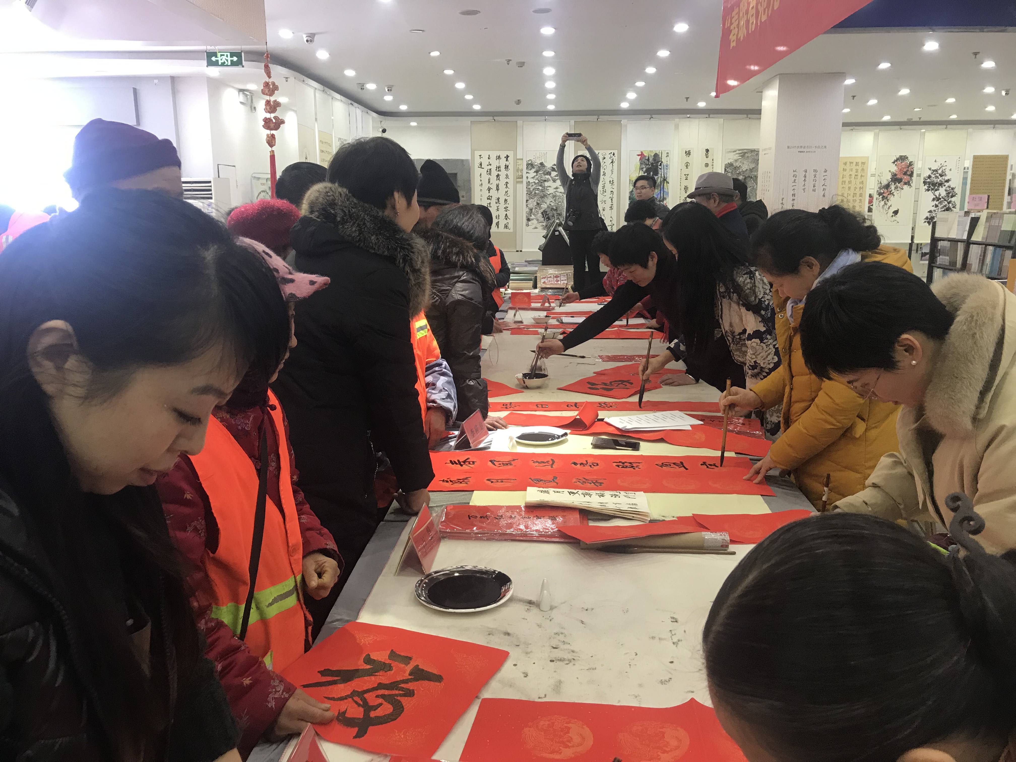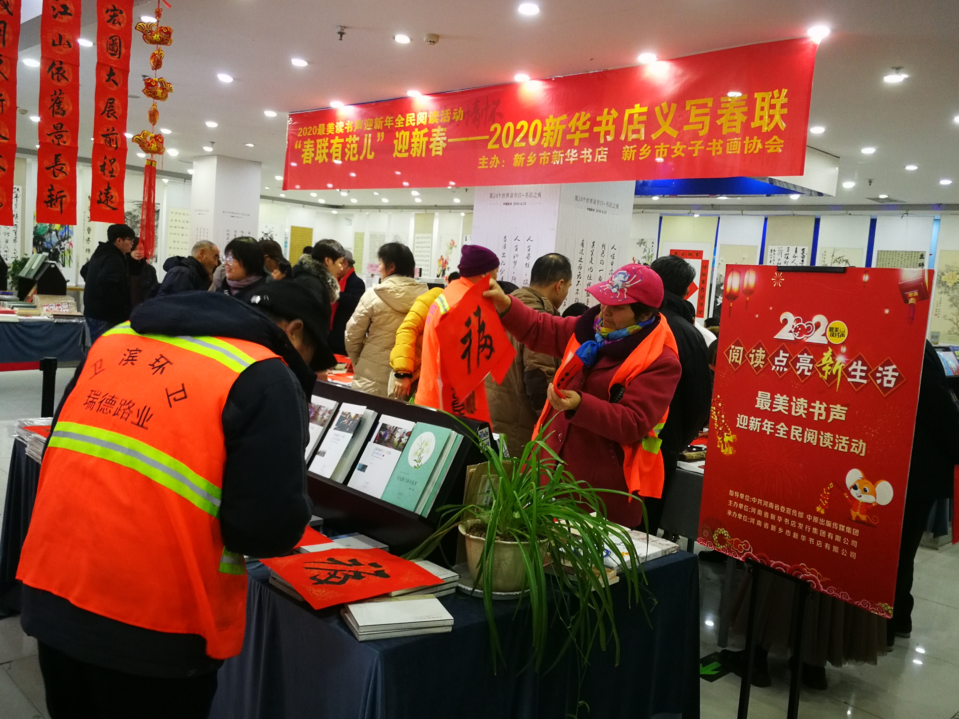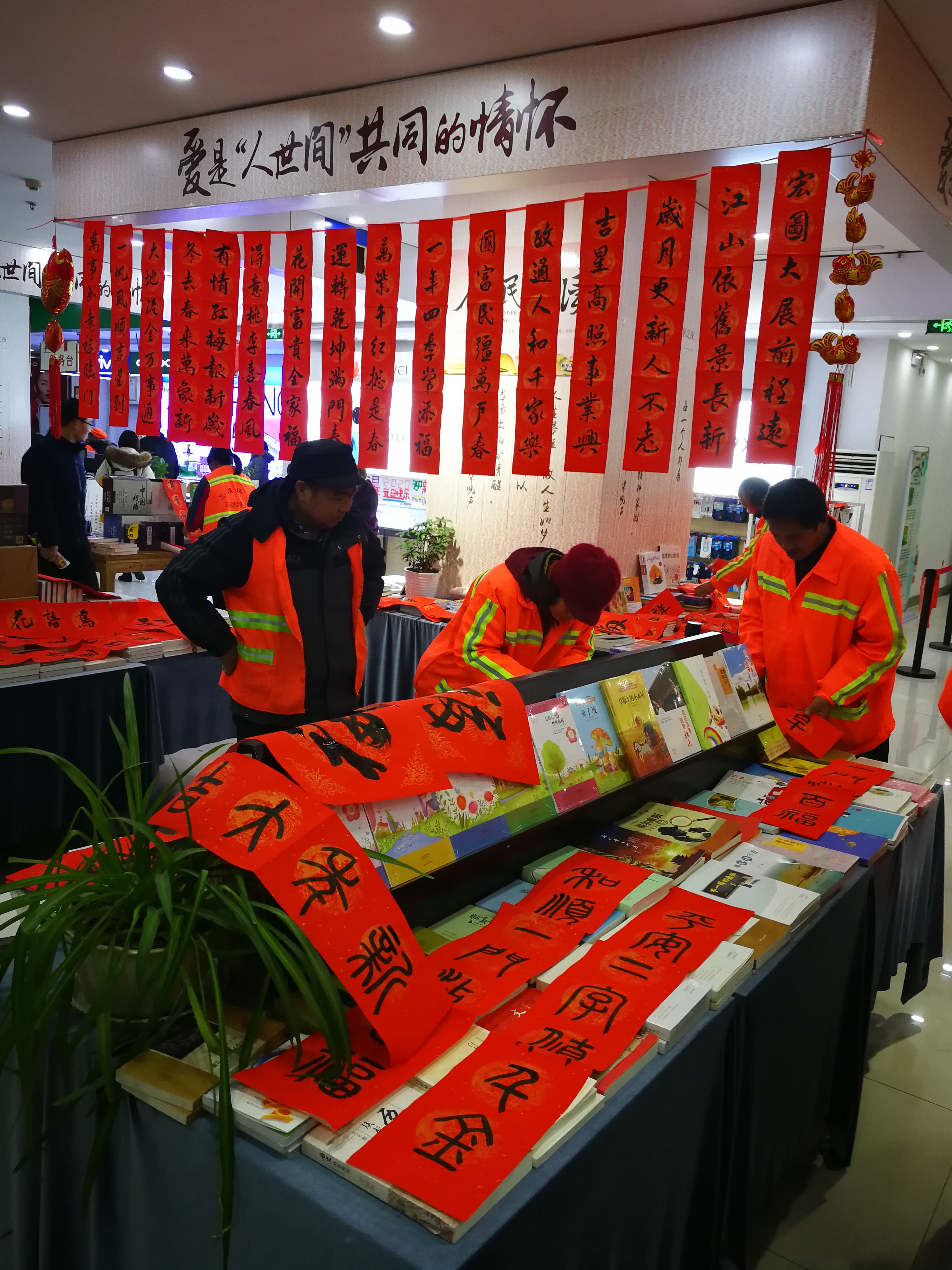 元月12日,新乡市店在购书中心举办了“春联有范儿”为主题的新乡市女子书画家协会义写春联活动。活动共邀请了新乡市十余名女性书法家现场为读者义务书写并赠送春联活动,当天购书读者凭小票均可领取一份包含墨香和祝福的春联,同时,贫困职工、劳模、环卫工人均可优先领取书法家手写春联一副。据了解,活动当天,来自新乡市女子书画家协会的书法爱好者现场挥毫泼墨,共计送出福字170余幅,春联300余对儿,为广大市民送去属于新华人的新春祝福。