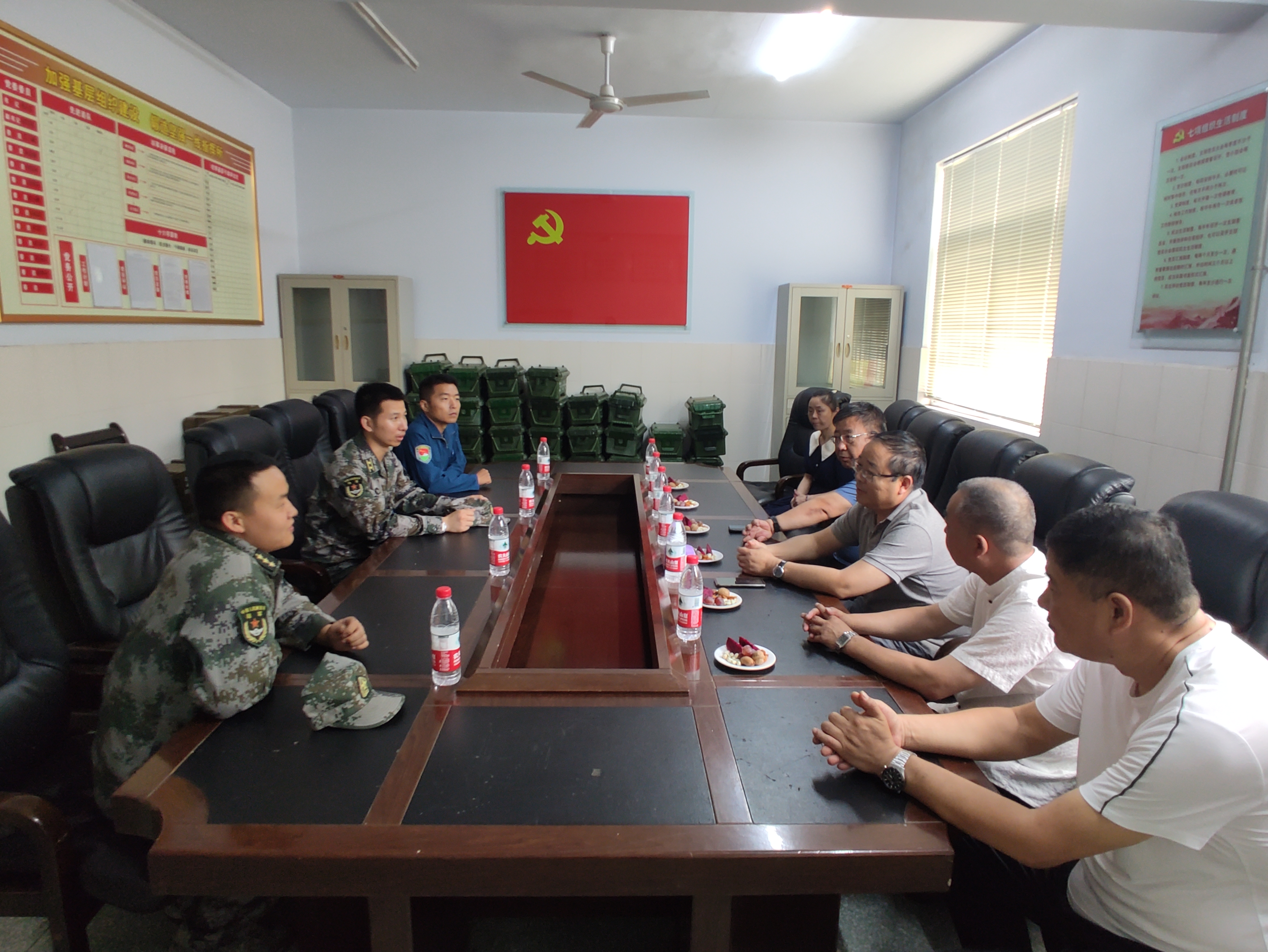 7月31日,新乡市店领导班子一行来到共建对子单位---驻新某集团军运输直升机一营开展“八一”拥军慰问活动,共叙军民鱼水情深,受到人民子弟兵的热烈欢迎。