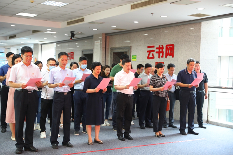 活动中,省委宣传部文化企业党建办公室主任赵凯以“不忘峥嵘岁月、致敬繁华时代—老兵的情怀”为题讲了一堂精彩的微党课,回顾了人民军队成立的历史及红25军在我省光荣的长征历程;发行集团党委书记亓新民介绍了新华书店红色基因的历史传承和发展壮大的历史沿革,阐释了发行集团发扬“新华精神”,以党建引领生产经营所取得的高质发展成效;全体党员重温了入党誓词,集体朗诵了诗歌《我是共产党员》。