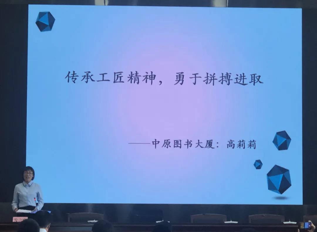 报告会上,来自河南省新华书店发行集团的3位同志--“河南省五一劳动奖章”获得者中原图书大厦的高莉莉,“河南省五一巾帼标兵岗”获得者图书物流事业部退货组的代表郭艳艳,“全国优秀共青团员”获得者党政办公室的闫三洋,与来自集团系统各单位代表一起上台作事迹报告。他们结合自身工作实际,用朴实的语言、真挚的情感、鲜活的事例,从不同角度讲述了在平凡工作岗位上执着坚守、爱岗敬业、努力拼搏、勇于奉献的职业情怀。
