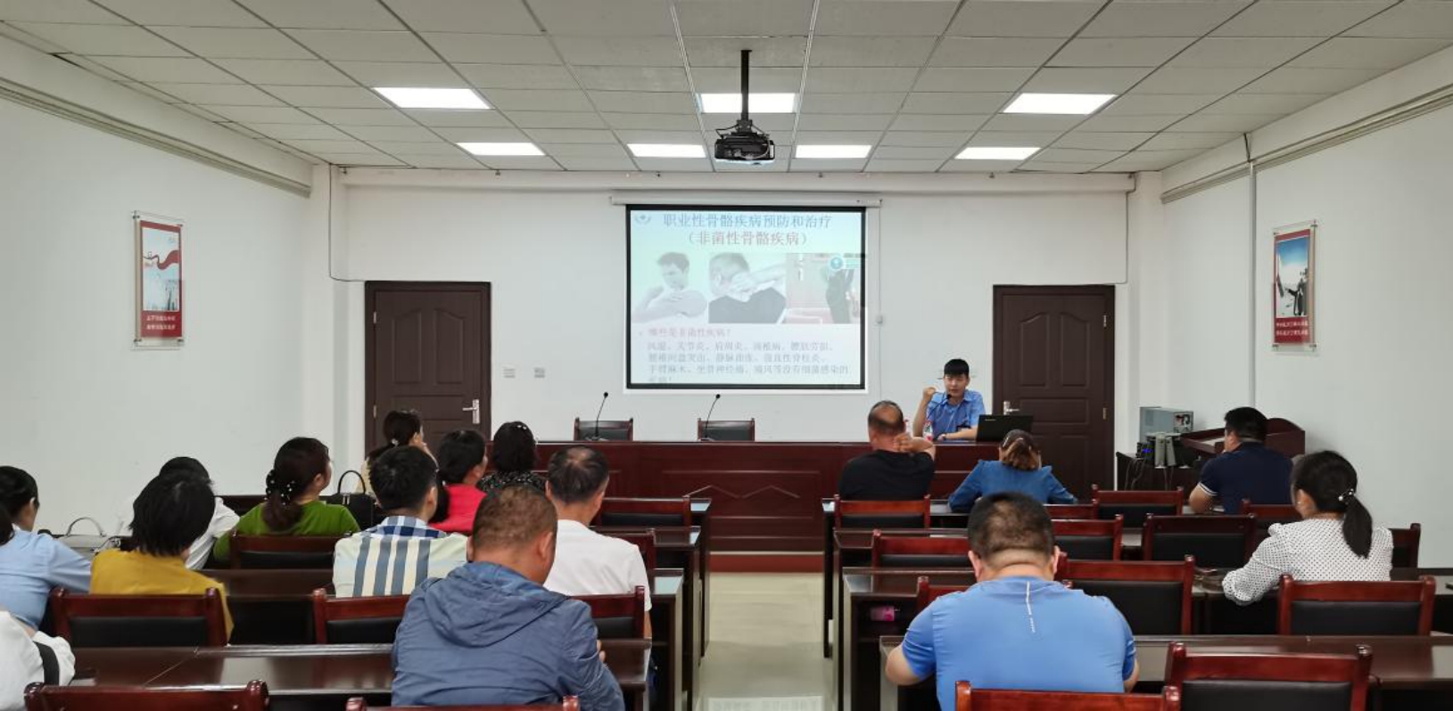 授课过程中,侯老师从卫生安全突发性事故及突发急症的院外自救呼救知识、中医养生保健知识及职业病常见病预防、职工心理健康等方面进行详细讲解。