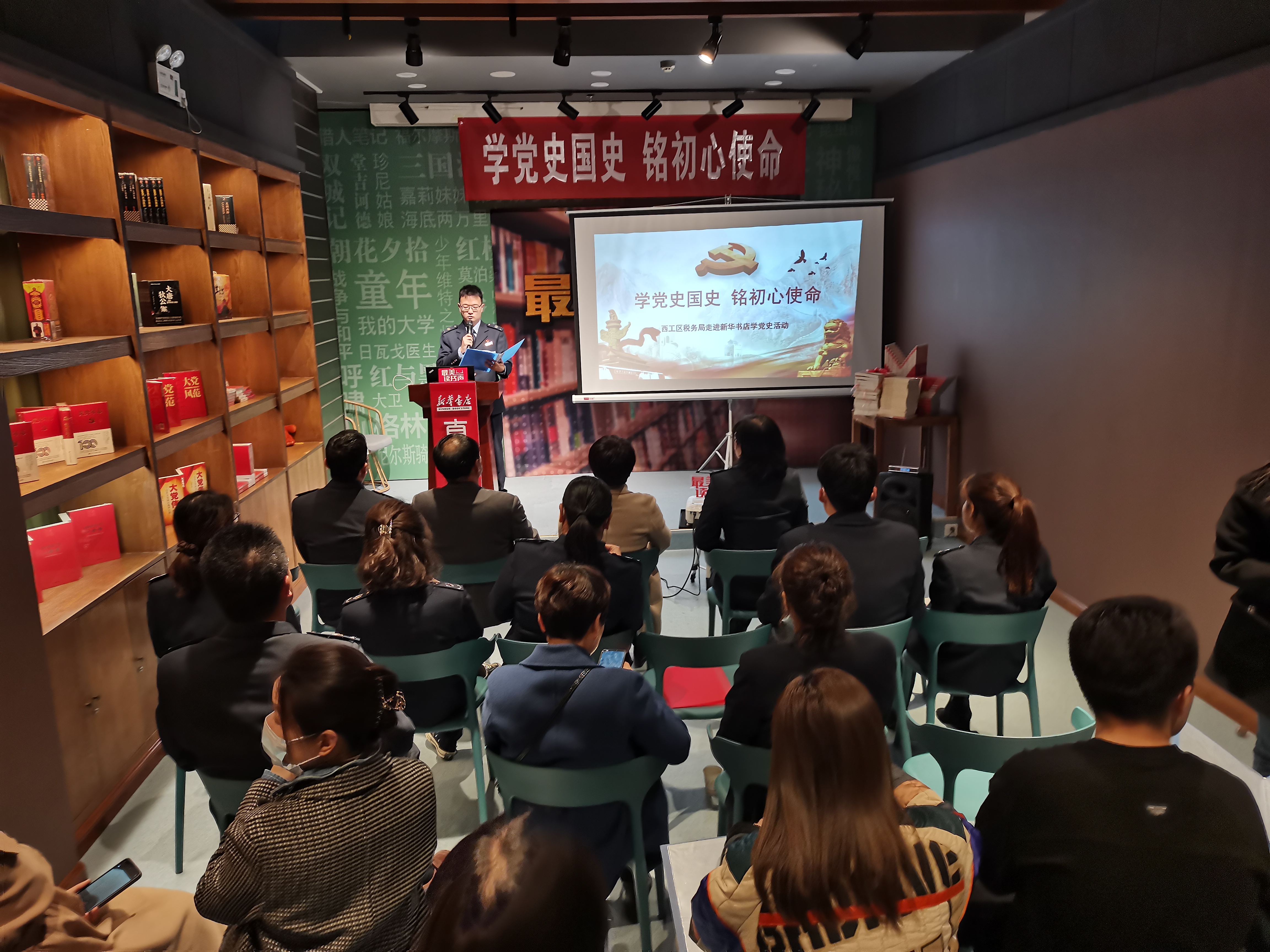 3月10日下午,洛阳市店和西工区税务局在新华书店党史学习教育基地联合举办“学党史国史 铭初心使命”支部联建活动。党员们学党史、读家书、诵诗歌、谈心得,以支部联建、交流互鉴的形式将党史学习教育活动推向高潮。