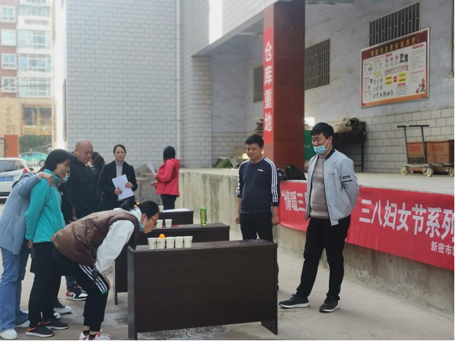 为迎接“三八妇女节”来临,活跃节日气氛,丰富职工的文化生活,增强职工的凝聚力。3月8日下午,新密市店组织开展庆“三八”文体活动。活动有拔河比赛、吹乒乓球、跳绳、踢毽子、跳棋、象棋六个项目。