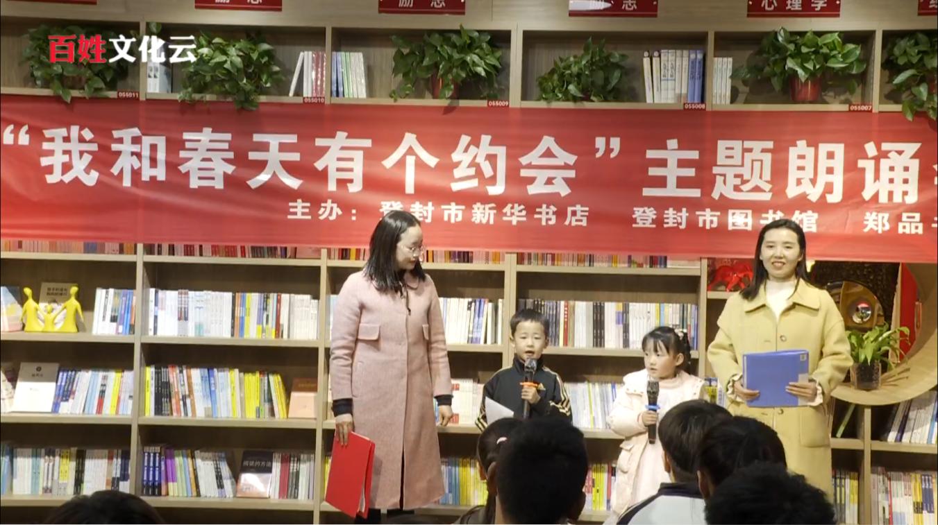 3月19日下午,由登封市新华书店、登封市图书馆、郑品书舍主办,以“我和春天有个约会”为主题的首届“登封市全民朗诵会”,在我店少林路店成功召开。朗诵会上,来自社会各界的20余名朗读者,以独诵、合诵、亲子诵等方式,饱含深情的分享了《黄河颂》、《面朝大海,春暖花开》、《三月的诗篇》、《每到春天》等优美篇章,通过诗歌领略春回大地、万物生发的勃勃生机,通过诗歌体味挣脱严寒、破土重生的昂扬力量,通过诗歌凝聚饱含希望、勇毅前行的奋进精神。