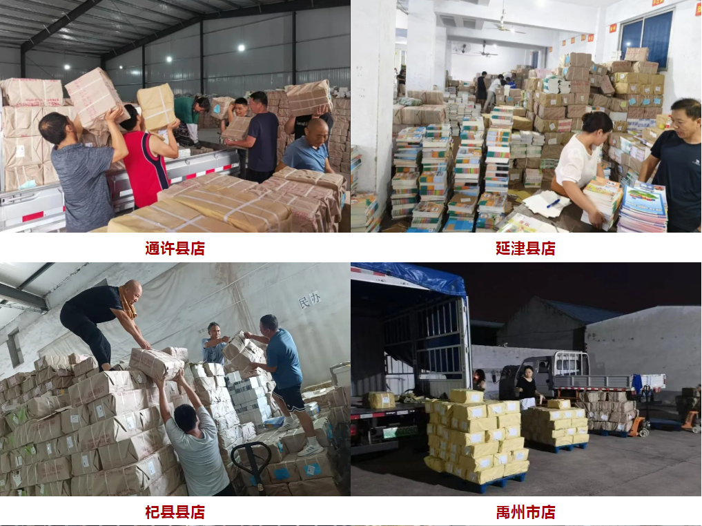 自2024秋季教材发运启动以来,全省新华书店众志成城、同心协力,全方位保障发运工作。万余名专业发行尖兵牢固树立政治意识、责任意识和大局意识,拧成一股绳、铆足一股劲,采取“白+黑”“5+2”24小时轮班制,在抢时间、赶进度、保质量上连续奋战,从晨光熹微到繁星漫天,日升月落默默记录着大家忙碌而坚定的身影。同时,为充分发挥党支部战斗堡垒和党员先锋模范作用,全省各级新华书店纷纷组织青年党员组成“青年突击队”“教材发运党员先锋队”,走在先、干在前、做表率,全力支援教材发运一线,共同用实际行动诠释了“爱店敬业”的新华精神。