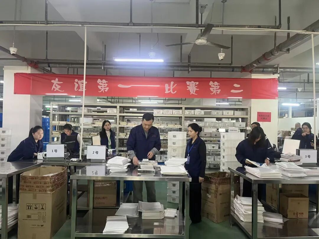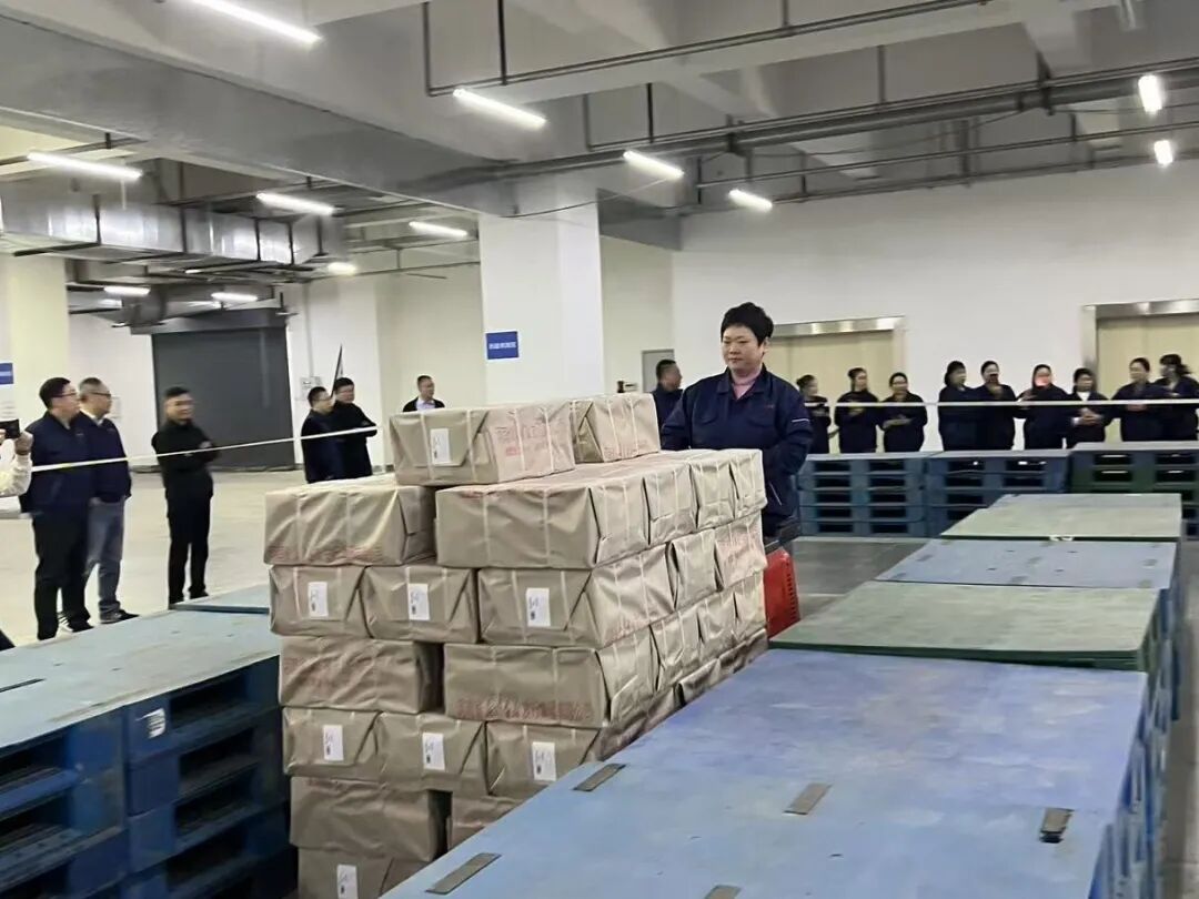 赛场上,选手们精神饱满、奋勇争先,构成了一副“比学赶超”的生动画面。站驾叉车计时赛现场,参赛选手沉着操控,精准避开障碍、控制车速,在狭窄通道内灵活转向,既展现了娴熟的驾驶技能,更凸显了“安全第一”的作业理念;手工包装团体计时赛现场,参赛团队手法娴熟、分工明确、配合默契,不断刷新纪录,实现“速度与质量”双优双提升;电商岗位技能赛现场,参赛选手精准操作,同时自如切换多个系统,细致快速完成打包作业,展现出极高的职业素养及精湛的手工作业能力。