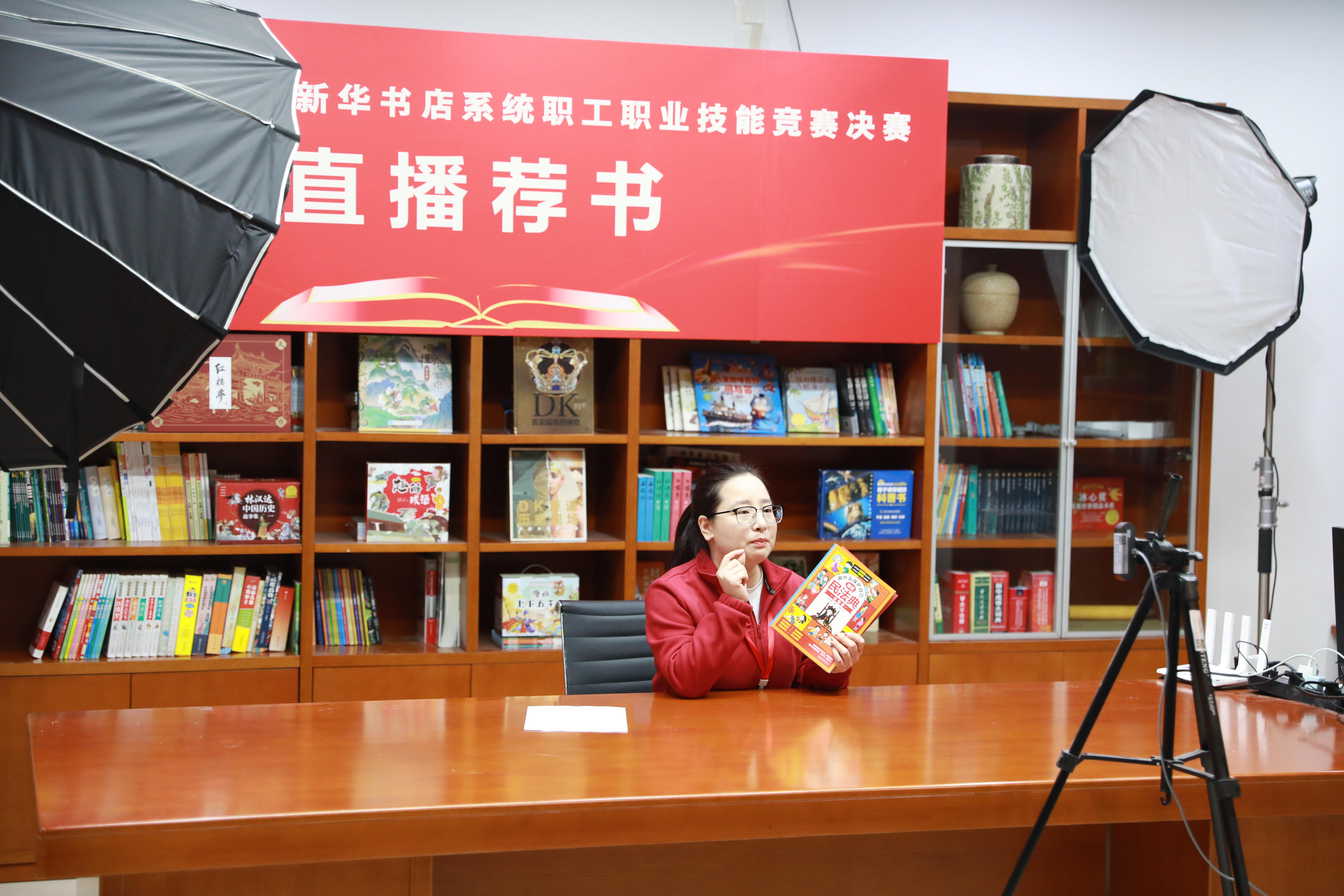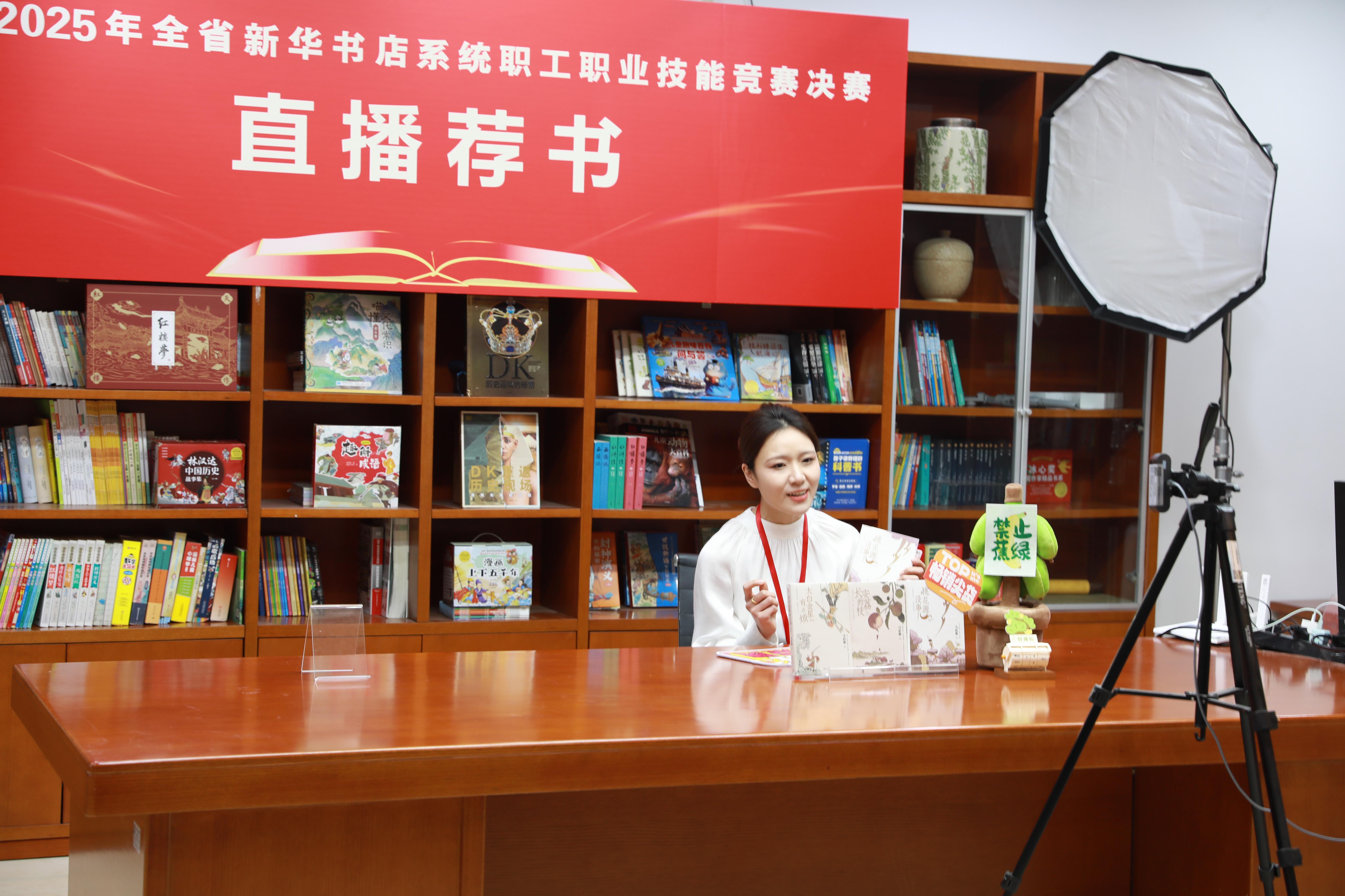 本次大赛坚持“围绕中心、注重实战、服务发展”的办赛理念,紧扣图书发行、阅读服务、创新业务发展等核心领域,设置图书造型及融合美陈、直播荐书、门店研学导师和少儿绘本讲读师四个竞赛项目。赛事设置上,既有对传统业务技能的巩固提升,也有对新技能、新模式的探索实践;赛事规则上,既考验基础功底,更注重考察创新能力。 决赛现场氛围紧张热烈,各项目角逐亮点纷呈。图书造型及融合美陈项目赛场,选手们巧手翻飞,将一本本图书打造成寓意深刻的艺术造型,让书香与美学完美交融;直播荐书项目赛场,选手们化身专业主播,以生动讲解、互动演示精准传递图书核心价值,展现出新时代图书发行的创新表达;门店研学导师项目赛场,选手们结合本土文化特色,将文学、历史、科学等多领域知识融入研学课程,把“五育融合”具象为可感知、可参与的实践体验;少儿绘本讲读师项目赛场,选手们化身“故事魔法师”,以精巧灵动的设计、充满童趣的互动,展现出少儿阅读的精彩体验。比赛间隙,选手们相互交流经验、切磋技艺,在比拼中找差距、在交流中促提升,充分彰显了“比学赶超”的良好氛围。