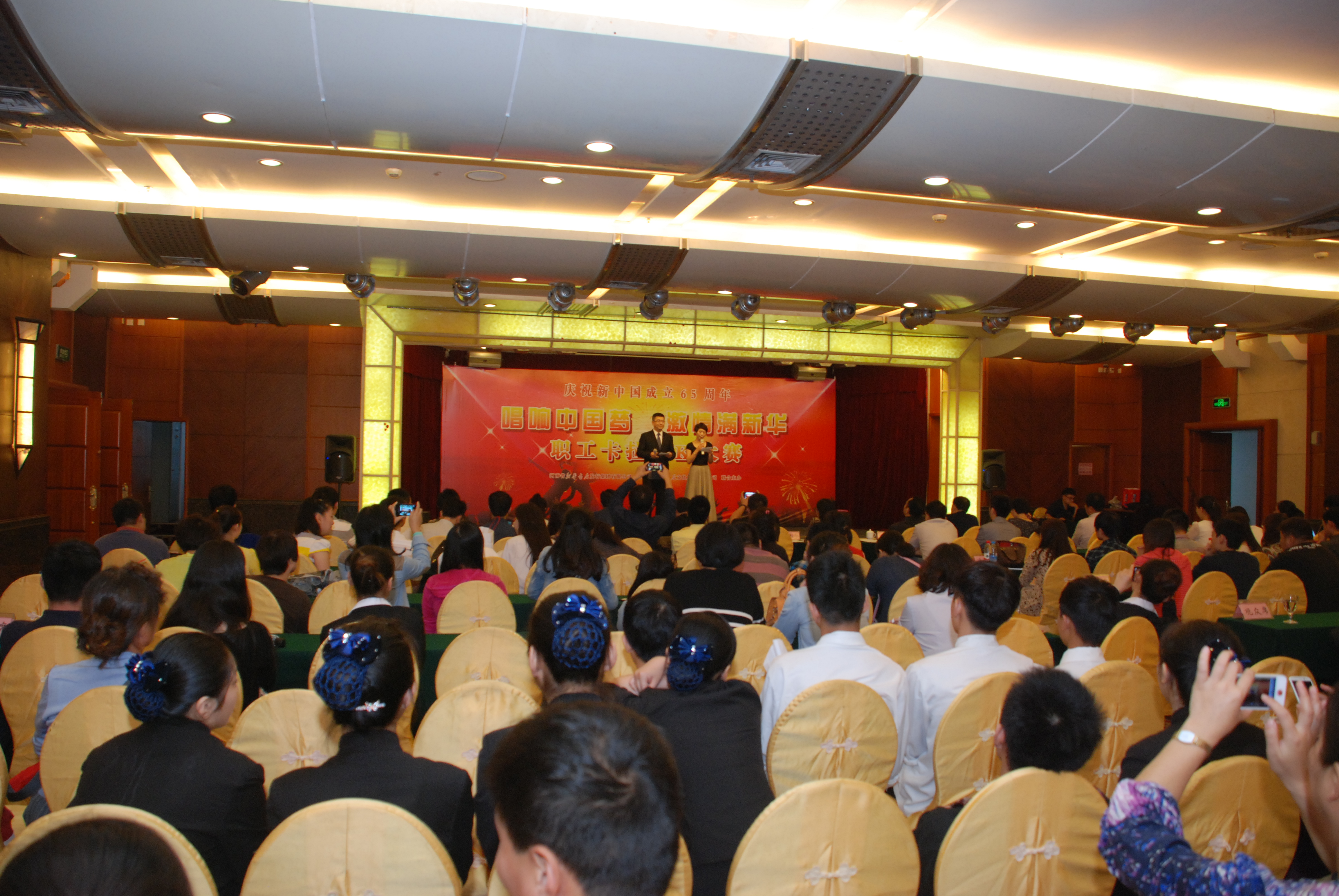 为庆祝新中国成立65周年,持续推动党的群众路线教育实践活动深入开展,进一步丰富广大职工群众的精神文化生活,激发大家干事创业、追逐梦想、助推企业跨越发展的信心豪情,发行集团党委于9月28日下午在新华建国饭店成功举行了“唱响中国梦 激情满新华”职工卡拉OK歌唱比赛。中原出版传媒集团工会副主席、党群工作部主任张彩华,集团纪委副书记、纪检监察审计部主任王锦,发行集团党委书记李向午,工会主席薛冠华,纪委书记张建,新华建国饭店总经理陈鹏出席比赛活动并为获奖选手颁奖。 此次比赛由中国·金沙贵宾3777线路检测中心、河南省新华书店文化发展有限公司联合举办。经预赛初选,共有28组34名选手参加了当天的决赛,分别以独唱、对唱、合唱等丰富多彩的形式,以饱满的激情演唱了《祖国你好》、《红旗飘飘》、《草原上升起不落的太阳》、《军港之夜》、《最炫民族风》等一大批热忱歌颂祖国、歌颂共产党、歌颂社会主义新生活的红色、经典歌曲,悠扬动听的旋律传递了广大干部职工对党和祖国的热爱,展示了大家奋发向上的精神风貌,增强了职工群众的集体凝聚力与荣誉感。比赛精彩纷呈,高潮迭起,竞争激烈,观众的欢呼声、掌声此起彼伏,最终角逐出了一、二、三等奖。 此次比赛活动,为广大职工奉献了一场丰富的文化盛宴,展现了新华职工的精神风貌,抒发和弘扬了广大职工的爱国情怀,激发了广大职工为实现个人价值、助推企业发展的工作热情。