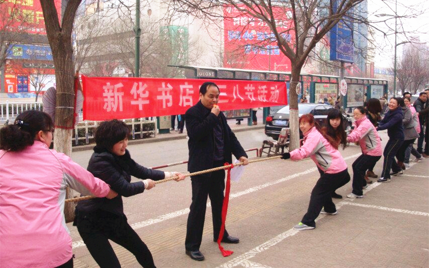 “三·八”节即将来临,三门峡市店组织全体女职工在图书大厦门口进行文体活动比赛,单位所有男职工也都来参与和助兴。活动中大家积极参与拔河、踢毽子、成语竞猜等趣味文体活动,现场气氛热闹非常。此次活动增强了全体职工的凝聚力,在缓解工作的疲劳的同时,也增加了工作热情。该店表示在新的一年里,将充分发挥顽强拼搏的精神,在辛勤工作中找到奋斗的快乐。