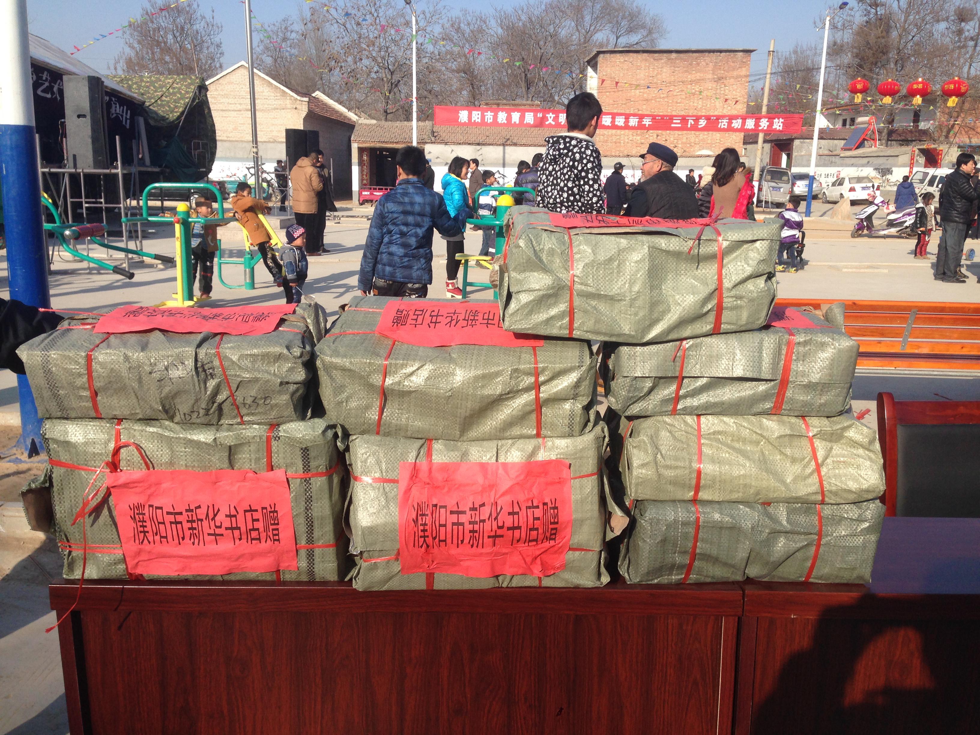 为了促进美丽乡村建设,进一步丰富群众文化生活,让农民及留守儿童看到更多好书,濮阳市店积极参加市委宣传部组织多部门共同参与的 “四下乡”集中活动。3月3日上午,该店组织人员驱车到王助镇白屯村进行爱心捐书活动。本次捐赠图书1200余册,价值2万余元。所捐赠的图书包括农业科技、科普、法律法规、文学作品、生活、少儿读物等书籍及多种杂志。白屯村的村民和孩子们见到所捐图书后,兴高采烈,齐声赞扬,说新华书店为村子里办了一件大好事。