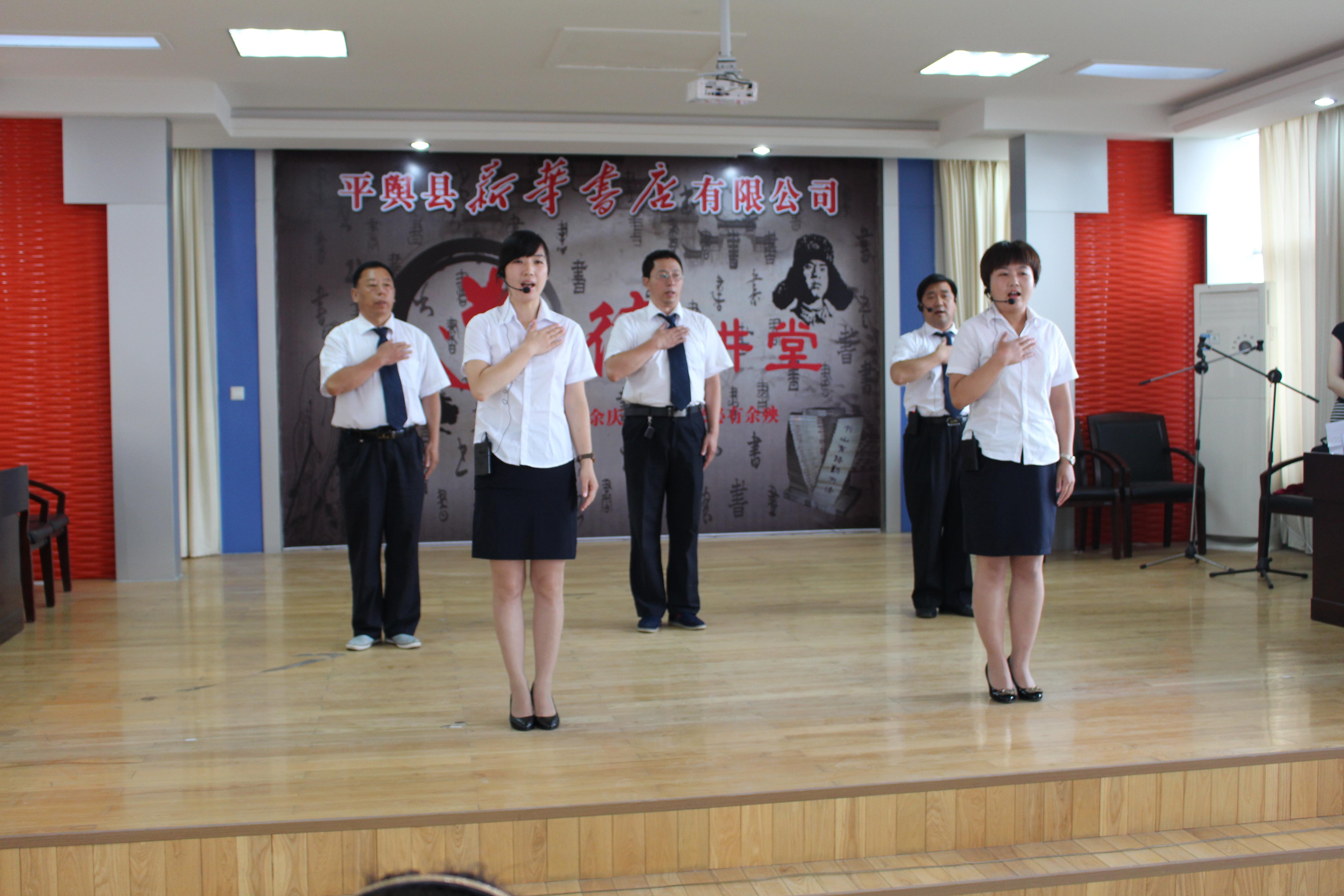 为了庆祝世界反法西斯战争胜利70周年,讴歌改革开放以来在党的领导下所取得的巨大成就,推进企业文化建设,用歌声凝聚力量,用歌声放飞梦想。平舆县店在7月24日在五楼会议室举办平舆县新华书店“党在我心中”歌咏比赛。