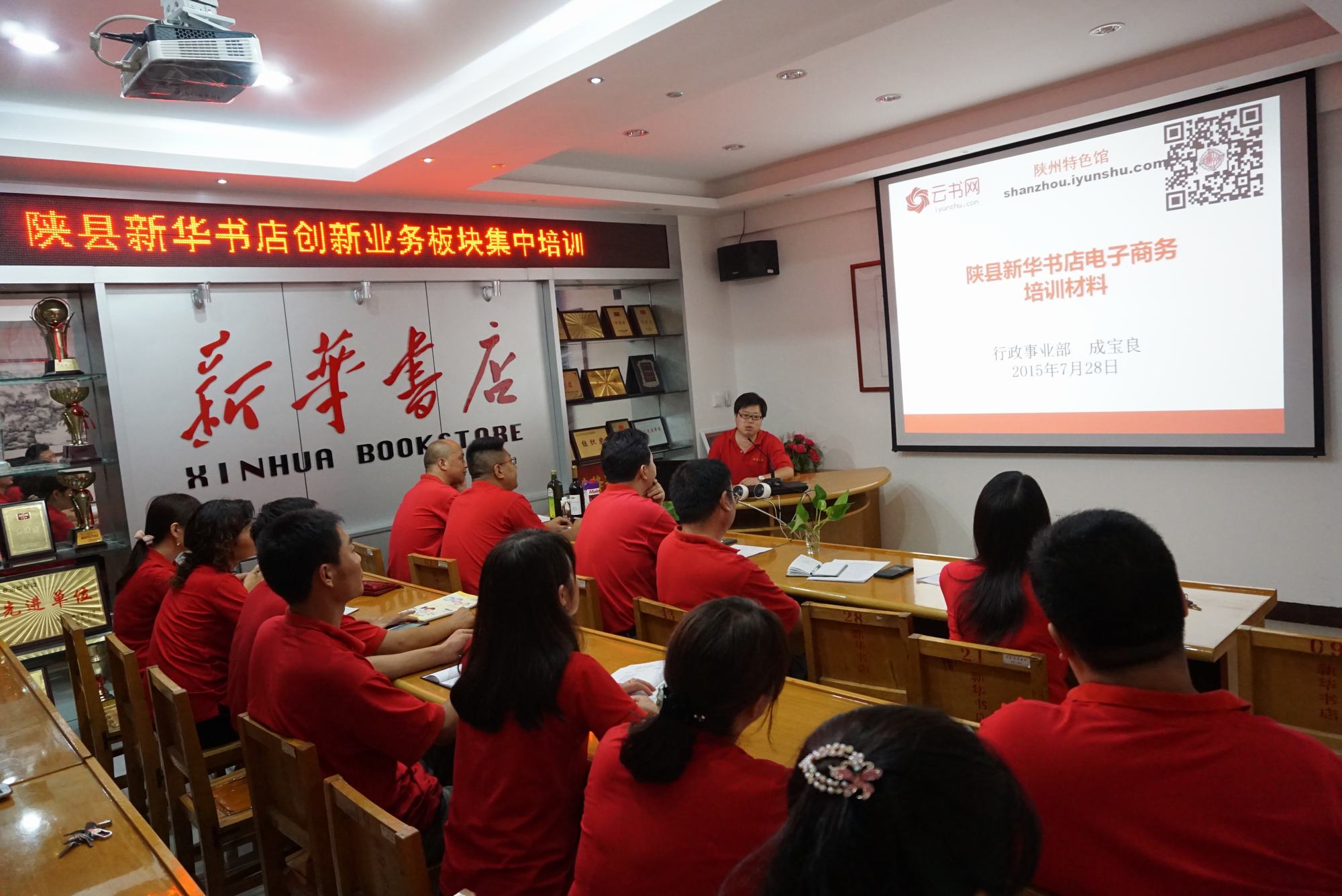 7月28日晚,陕县新华书店开展创新业务板块集中培训,4名中层干部分别就境外产品、电子商务、暑期营销和高中教材发行等向全体职工做了精彩讲述。