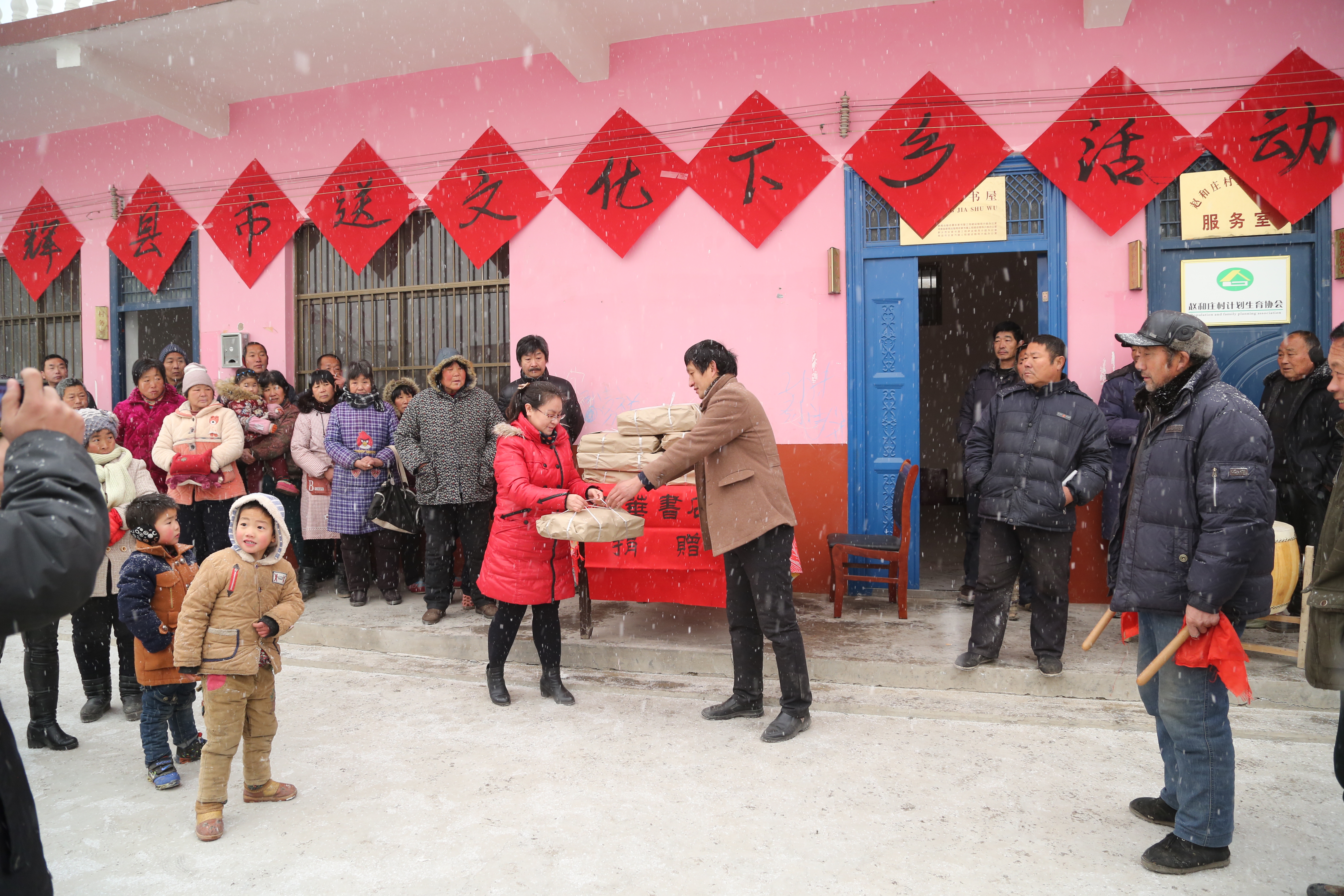 1月22日,辉县市店在辉县市委宣传部的统一布置安排下,积极组织参加“科技、文化、卫生”三下乡活动,顶风冒雪来到辉县市吴村镇赵和庄开展优秀读物展销,同时向赵和庄捐赠图书700多册,价值一万余元。该店人员表示,虽然天冷,但是心里是热呼呼的,因为,这次活动为广大农民朋友送去了精神食粮,丰富了人民群众的精神文化生活。